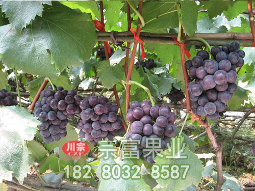 【品種來源】歐美雜種,原產日本,1959年引入我國。 【品種特征】果穗大,平均重300~430g,圓錐形,鬆散或中等緊密。果粒極大平均重9~12g,橢圓形,紫紅色,果粉中等厚;果皮厚;肉軟多汁黃綠色,含可溶性固形物14%~16%,含酸量0.6%~0.7%,味甜酸。每果枝平均1.3~1.8穗。副稍結實力強,由萌芽到果實充分成熟約需130~140天,為中熟品種。品質中上,豐產,是當前我國栽培地區廣、麵積大的鮮食葡萄品種。如管理不當,落花果嚴重;結果過多,易使樹勢早衰,影響以後產量。可適度發展。