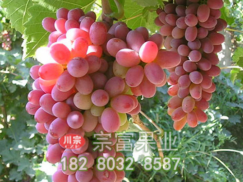 味美色豔。果穗圓錐形,中等大小,果粒整齊緊湊,穗重800克左右,大穗重1600克。果粒橢圓稍長型,顏色鮮紅透亮,果霜鮮豔,單粒重6—8克,可溶性固形物含量20%—25%,糖酸比25.9:1,果肉淺紅色,肉質脆能切片,既可鮮食又可製幹。果皮脆,可以隨果實一起食用。