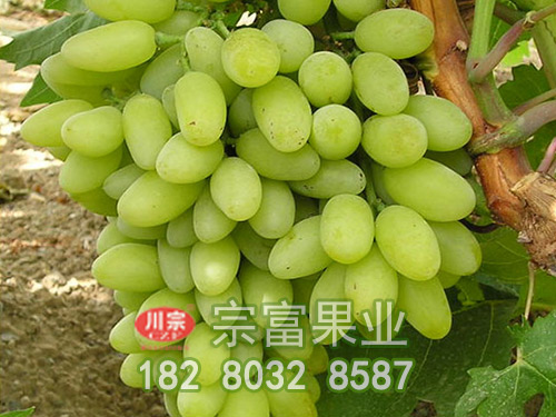 果穗大,平均重337克,長23.5厘米,寬15.6厘米,雙歧肩圓柱形,果粒著生緊密或中等緊密。果粒較小,在自然狀況下平均粒重4-5克,縱徑14.4毫米,橫徑12.9毫米,橢圓形,黃白色,果粉中等厚,皮薄脆;果肉淺綠色,半透明,肉脆、味甜,汁少,無香味。含糖量22.4%,含酸量0.4%,品質優良。果實出幹率20%~30%。