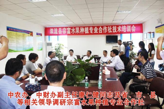 7月17日,中農辦副主任、中財辦副主任唐仁健考察成都市雙流縣宗富水果種植專業合作社和永興漁業養殖專業合作社發展情況,省農業廳廳長任永昌,省農工委副主任宋全安、楊新元,市委副秘書長王樂君,市農委主要領導,雙流縣有關領導等陪同考察。