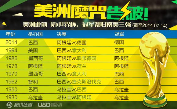 德國打破魔咒:曆史上在南美舉行的4屆世界杯,南美球隊終都成為了後的冠軍,這一次,德國終於打破了“歐洲球隊從未在南美奪冠”的魔咒,在巴西舉起了世界杯冠軍!