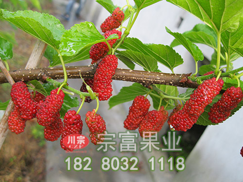 雜交品種,畝栽333株左右。樹形較開展,枝條粗直,葉心髒形,單芽果5g左右,果長4.5cm,長筒形,果子較大,紫黑色。長江以南5月中上成熟,采摘期20天左右,畝產鮮果2000kg,果子是提煉色素的好產品,適應深加工,不適合鮮食。
