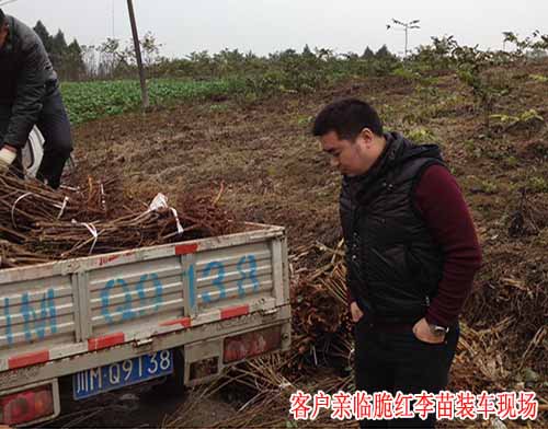 脆紅李苗2300株德陽馬先生定購,此圖:客戶親臨脆紅李苗裝車現場