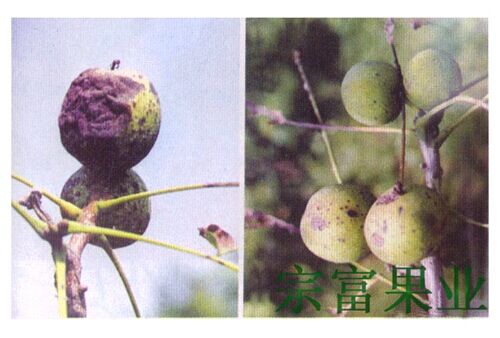 生長季節,根據天氣及病情,噴1:1:200波爾多液或50%退菌特600~800倍液。噴藥時間在山東省泰安地區,若雨季早,應於6月中下旬開始噴第一次藥;雨季晚,可延遲到7月上旬開始。據病情每半月噴一次,直到收果前,後期防治不能放鬆。