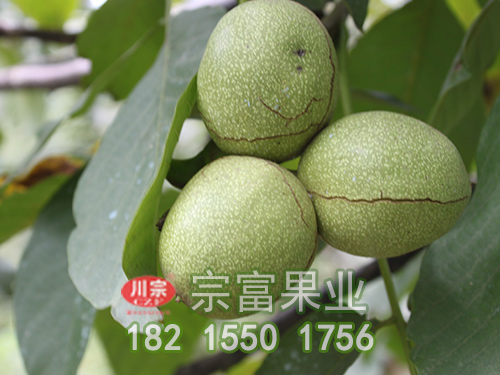 清香核桃屬晚實類型中結果早,豐產性強的品種。樹體中等大小,樹姿半開張,幼樹時生長較旺,結果後樹勢穩定。高接樹第二年開花結果,坐果率85%以上。新栽植的嫁接苗第二年開花株率60%以上,第三年開花株率100%,盛果期畝產300-400公斤。在河北保定地區4月上旬萌芽展葉,中旬雄花盛期,4月中、下旬雌花盛期,9月中旬果實成熟,11月初落葉。堅果較大,平均單果重16.7g ,近圓錐形,大小均勻,殼皮光滑淡褐色,外形美觀,縫合線緊密。殼厚1.0-1.1mm,種仁飽滿,內褶壁退化,取仁容易,出仁率52%—53%。種仁含蛋白質23.1%,粗脂肪65.8%,碳水化合物9.8%,Vb1 0.5mg ,Vb2 0.08mg ,仁色淺黃,風味極佳,絕無澀味。