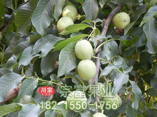 清香核桃屬晚實類型中結果早,豐產性強的品種。樹體中等大小,樹姿半開張,幼樹時生長較旺,結果後樹勢穩定。高接樹第二年開花結果,坐果率85%以上。新栽植的嫁接苗第二年開花株率60%以上,第三年開花株率100%,盛果期畝產300-400公斤。在河北保定地區4月上旬萌芽展葉,中旬雄花盛期,4月中、下旬雌花盛期,9月中旬果實成熟,11月初落葉。堅果較大,平均單果重16.7g ,近圓錐形,大小均勻,殼皮光滑淡褐色,外形美觀,縫合線緊密。殼厚1.0-1.1mm,種仁飽滿,內褶壁退化,取仁容易,出仁率52%—53%。種仁含蛋白質23.1%,粗脂肪65.8%,碳水化合物9.8%,Vb1 0.5mg ,Vb2 0.08mg ,仁色淺黃,風味極佳,絕無澀味。