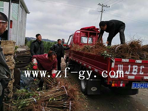 胭脂脆桃苗1000株和五月脆桃苗4000株由遂寧市浴風鎮楊總購買。此圖:桃苗正在裝車