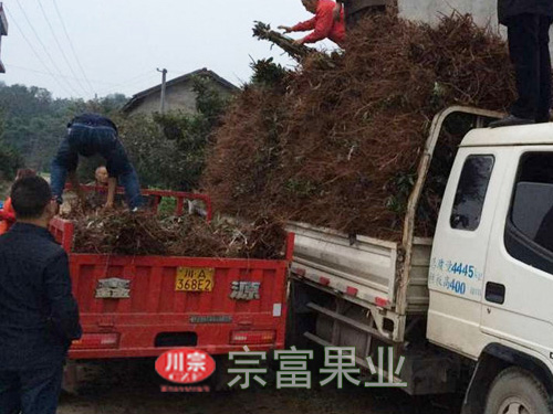 南充嘉陵石樓鄉30000株脆紅李苗正在苗圃裝車,準備送往南充嘉陵。