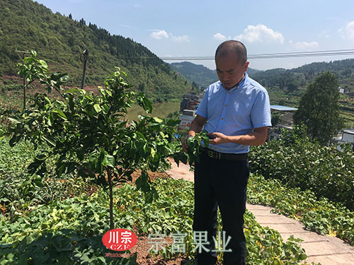 圖為:“宗富果業”鄭總分析紐荷爾臍橙柑橘苗病害