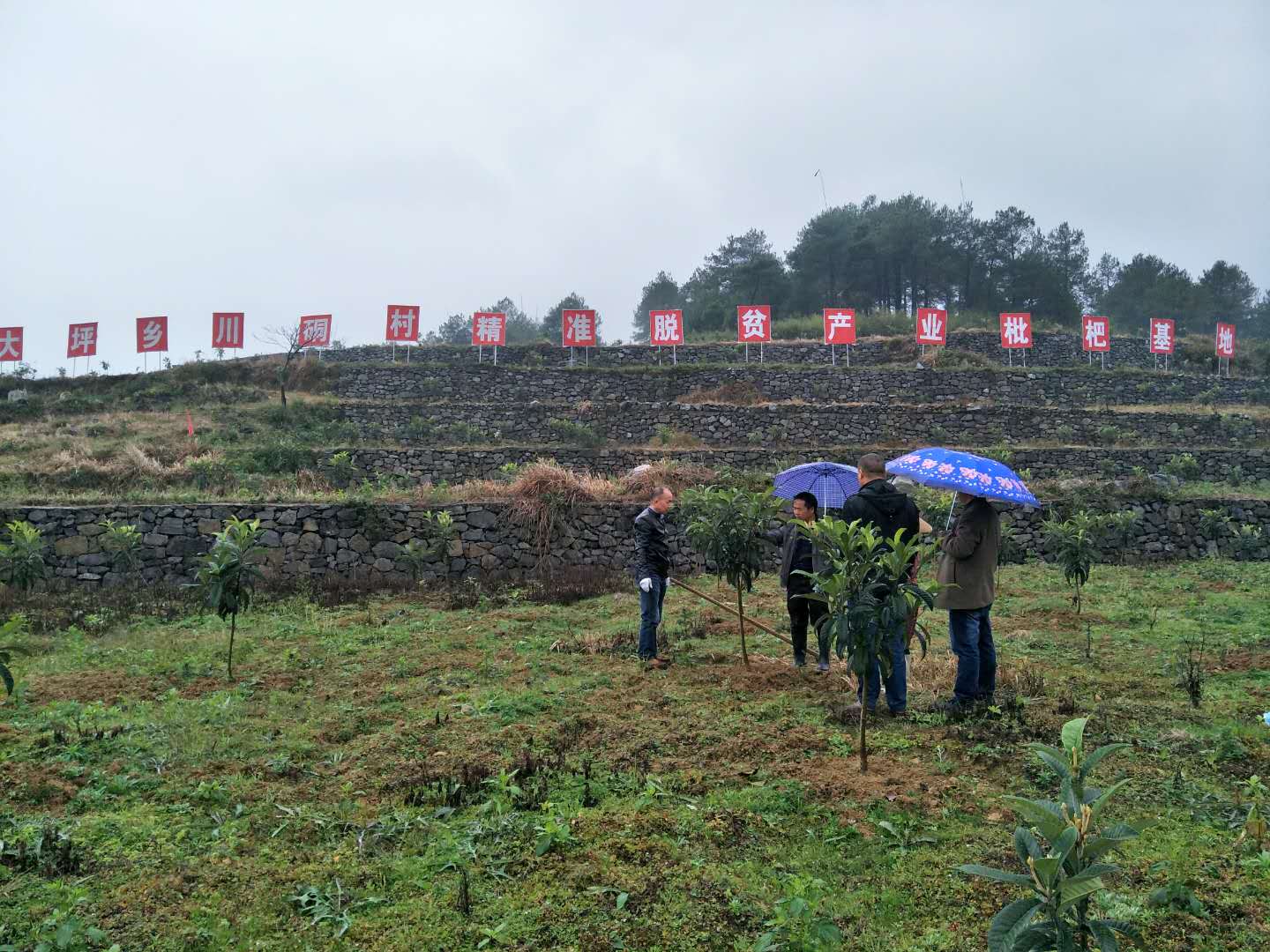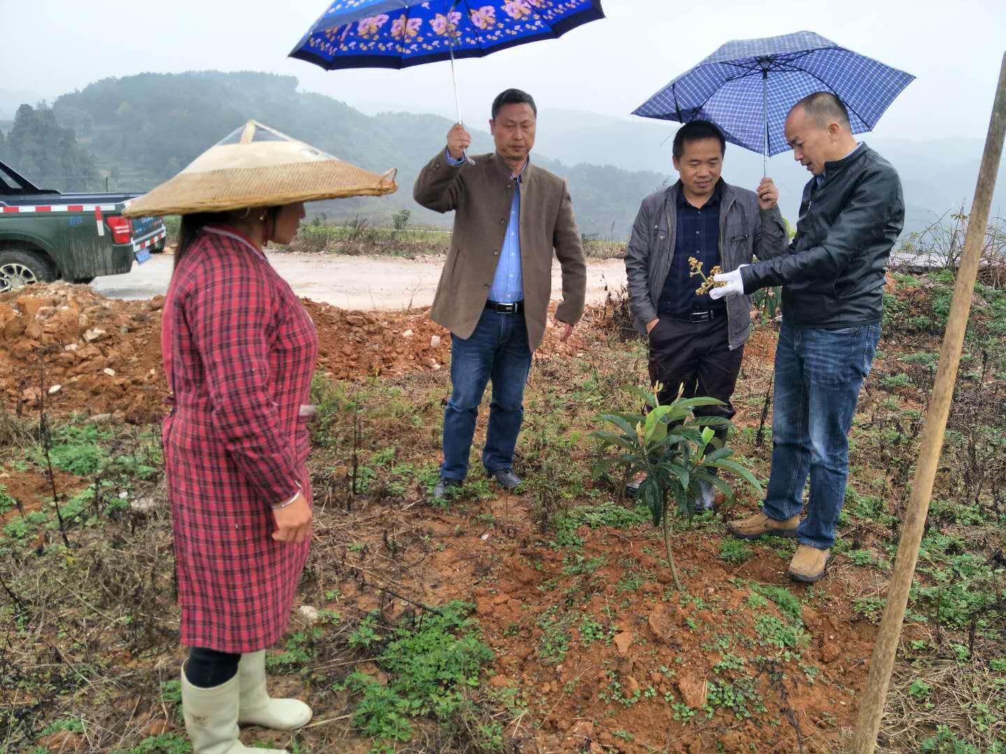 2015年-11月-15日,宗富果業果苗基地鄭技師回訪坪鄉硐村枇杷種植戶進行現場指導,盡管天公不作美下著綿綿細雨,但我們的技術人員與種植戶的注意力都專注在果苗技術栽培上麵。解決了他們近期生產中所遇到的一些種植難題。