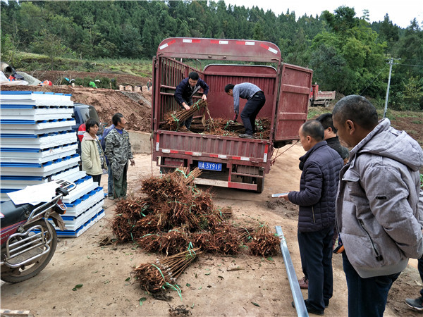 2017年11月22日,一大早李樹苗基地的技術員工就在苗庫裏繁忙了起來。因早在前幾個月,廣元彭老板到我基地考察李樹苗並交付了訂購金。這不,天剛蒙蒙亮,彭老板駕車來提李樹苗與已在旁等候已久的我社技術人員分工搬運裝車。裝車完畢之後我社技術員與彭老板一同前往,幫忙卸貨並現場指導栽植。